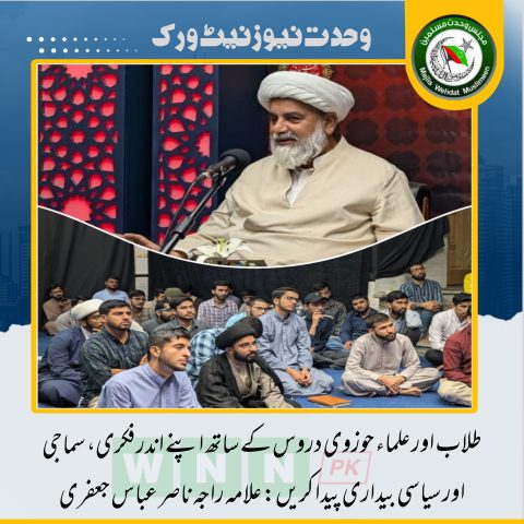 ایم ڈبلیو ایم پاکستان کے چیئرمین نے حوزہ علمیہ ثقلین قم المقدسہ میں ایک پُر مغز اور صمیمی نشست سے خطاب کرتے ہوئے کہا کہ طلاب اور علماء حوزوی دروس