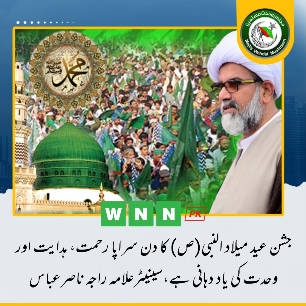 وحدت نیوز نیٹ ورک (اسلام آباد) چیئرمین مجلس وحدت مسلمین پاکستان سینیٹر علامہ راجہ ناصرعباس جعفری نے جشن عید میلاد النبی (ص) کے پر مسرت موقع پر امت مسلمہ کے نام پیغام میں کہا کہ تمام تعریفیں اس اللہ کے لئے ہیں جس نے سید المرسلین، حضرت محمد مصطفیٰ صلی اللہ علیہ وآلہ وسلم کی ولادت باسعادت کے ذریعے کائنات کو منور فرمایا۔