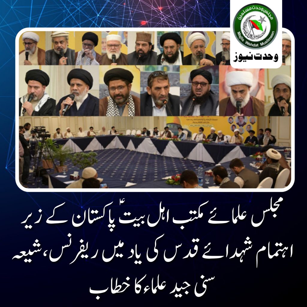 وحدت نیوز(اسلام آباد)مجلس علمائےمکتب اہلبیت پاکستان کے زیر اہتمام شہداء قدس کی یاد میں تعزیتی ریفرنس کا انعقاد، جس میں مختلف مسالک کے علمائے کرام سمیت مختلف شعبہ ہائے زندگی سے تعلق رکھنے والے افراد کی شرکت، تعزیتی ریفرنس میں مجلس وحدت مسلمین کے چیئرمین سینیٹر علامہ راجا ناصر عباس جعفری، سنی اتحاد کونسل کے سربراہ صاحبزادہ حامد رضا، ممبر اسلامی نظریاتی کونسل علامہ سید افتخار حسین نقوی، نائب امیر جماعت اسلامی پاکستان لیاقت بلوچ، جماعت اہل حرم پاکستان کے سربراہ مفتی گلزار احمد نعیمی، امت واحدہ پاکستان کے سربراہ علامہ محمد امین شہیدی، علامہ حسنین عباس گردیزی، شیخ انور علی نجفی، جماعت اسلامی کے راہنما پروفیسر محمد ابراہیم، علامہ عارف واحدی، علامہ ثمر نقوی، علامہ انیس الحسنین خان، علامہ اصغر عسکری، ڈاکٹر عیسی امینی ودیگر رہنماؤں کی شرکت اور خطاب۔