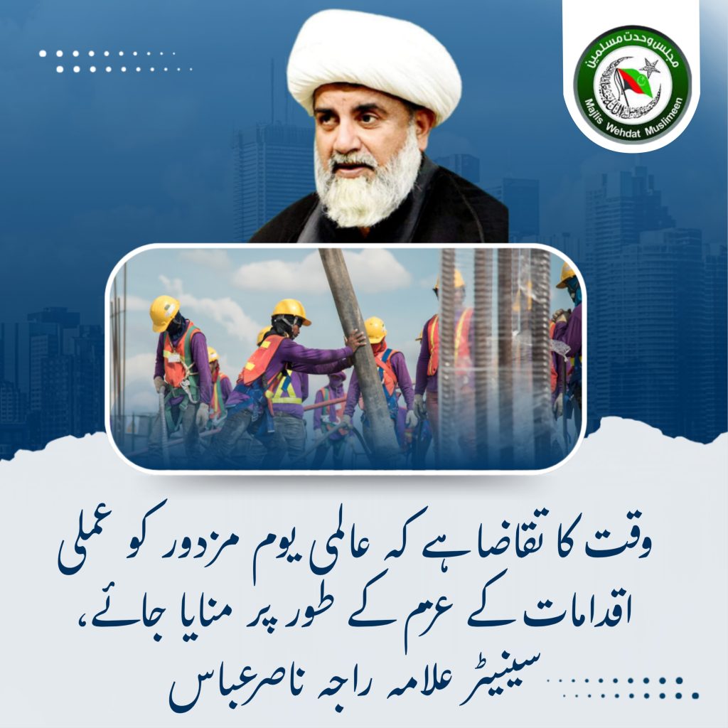 وحدت نیوز امور خارجہ (اسلام آباد) چیئرمین مجلس وحدٹ مسلمین پاکستان سینیٹر علامہ راجہ ناصر عباس جعفری نے عالمی یوم مزدور کی مناسبت سے اپنے پیغام میں کہا ہے کہ مزدوروں کی عزت اور وقار کا تحفظ ہم سب کا فرض ہے، مزدور اللہ کا دوست ہے، جس کی محنت کا جائز معاوضہ وقت پر دینا لازم ہے، وطن عزیز کی اقتصادی ترقی اور خوشحالی محنت کشوں کی انتھک کوششوں کے بغیر ممکن نہیں، آج بھی وطن عزیز میں مزدوروں کی بڑی تعداد استحصال، جبری مشقت اور خطرناک حالات میں کام کرنے پر مجبور ہے، حکومتیں اپنی ہی اعلان کردہ کم از کم ماہانہ اجرت کی پالیسی پر عمل نہیں کروا سکتیں ہیں، آج کسان کی مشکلات کا ادراک نہ کرنے والے وطن عزیز کو معاشی دلدل میں دھکیل رہے ہیں، مزدوروں پر سرمایہ داروں کی جانب سے استحصال پر مبنی ہتھکنڈوں کا جواب دینے کی ٹھوس حکمت عملی اپنائی جائے، بیرونی ممالک میں بھی اپنے محنت کشوں کے حقوق کے تحفظ کو یقینی بنایا جائے اور انکے مسائل کو حل کیا جائے۔